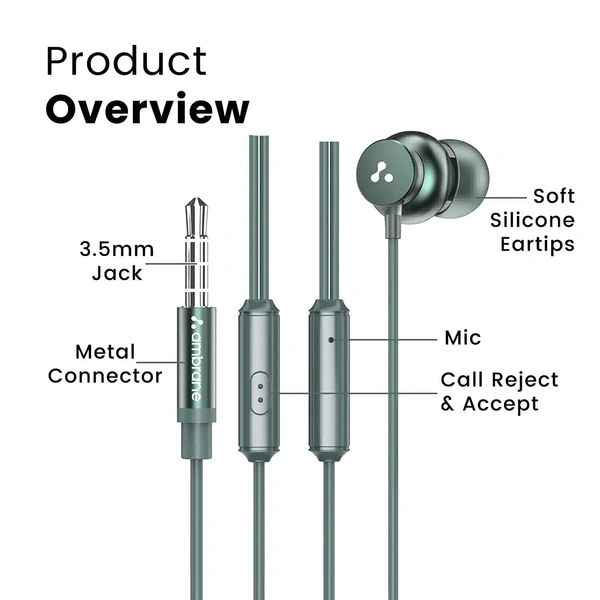 Ambrane Stringz 38 Wired Earphone | 3.5mm Jack | Green