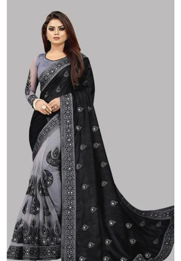 product:- fancy work saree, fabric:- dolla silk, blouse:- running work bouse, type:- work half half saree/ wash:- hand regular wash