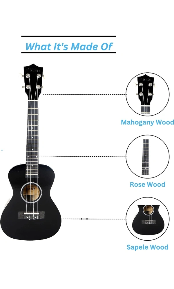 Festra UK-40-Black Concert (23 Inch) Ukulele Body made with Lindon and Mahogany Wood with Bag and 2 Picks (CONCERT-UK-40, BLACK)