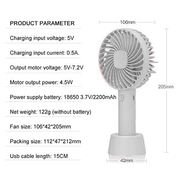 Name: Toyrist Mini Portable USB Hand Fan, Usb Fan Portable High Speed Built-in Rechargeable Battery Operated Summer Cooling Table Fan with Stand For Home Office Indoor Outdoor Travel (White Color)