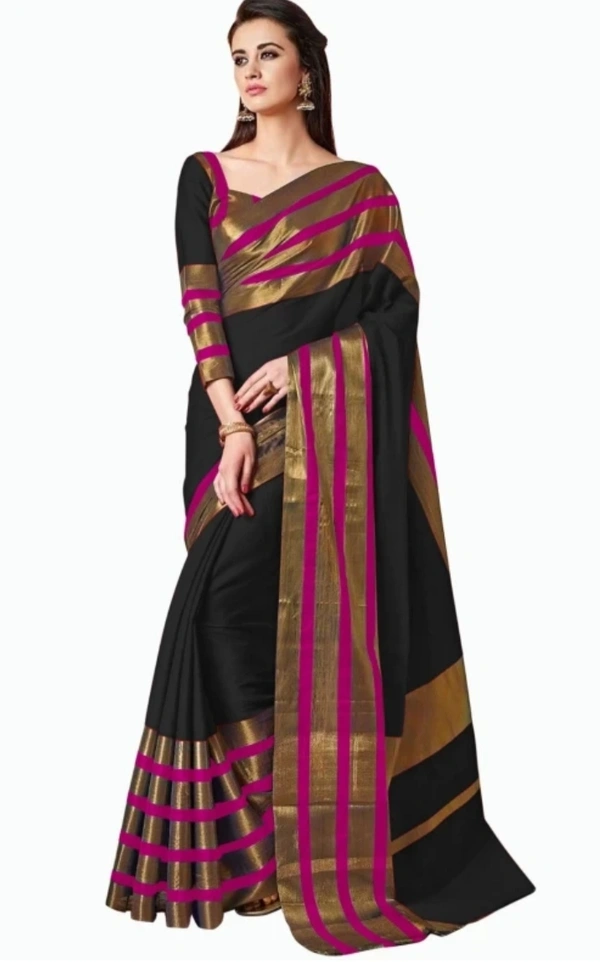 Striped, Woven, Embellished Bollywood Cotton Saree